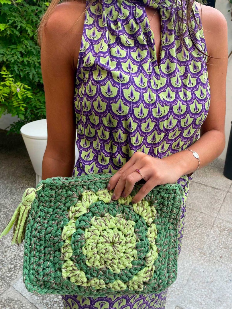 Descubre las elegantes Carteras de Mano 003, confeccionadas a mano y diseñadas con un encantador motivo floral en una gama de verdes. ¡Añade estilo y funcionalidad a tus outfits con estas hermosas carteras de mano!