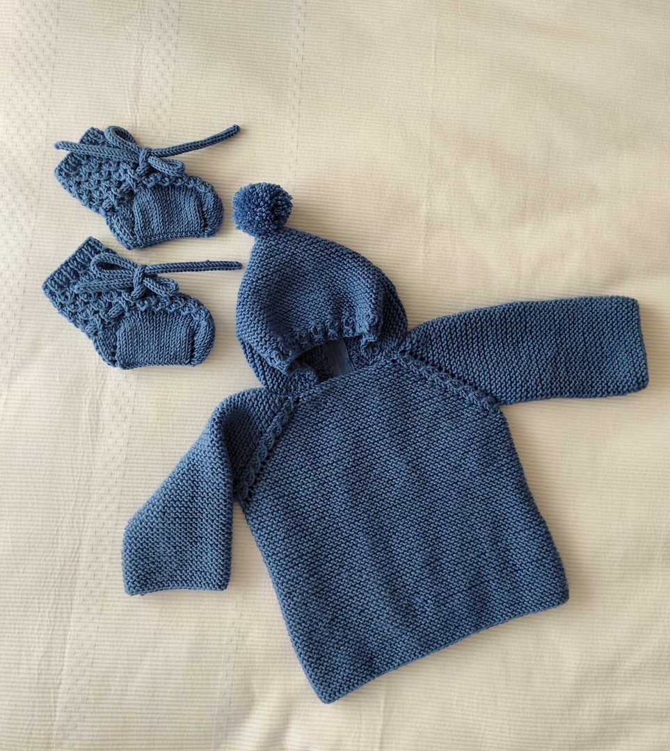 Conjunto cangurito y patucos 100 % lana merino. Elige tu color .